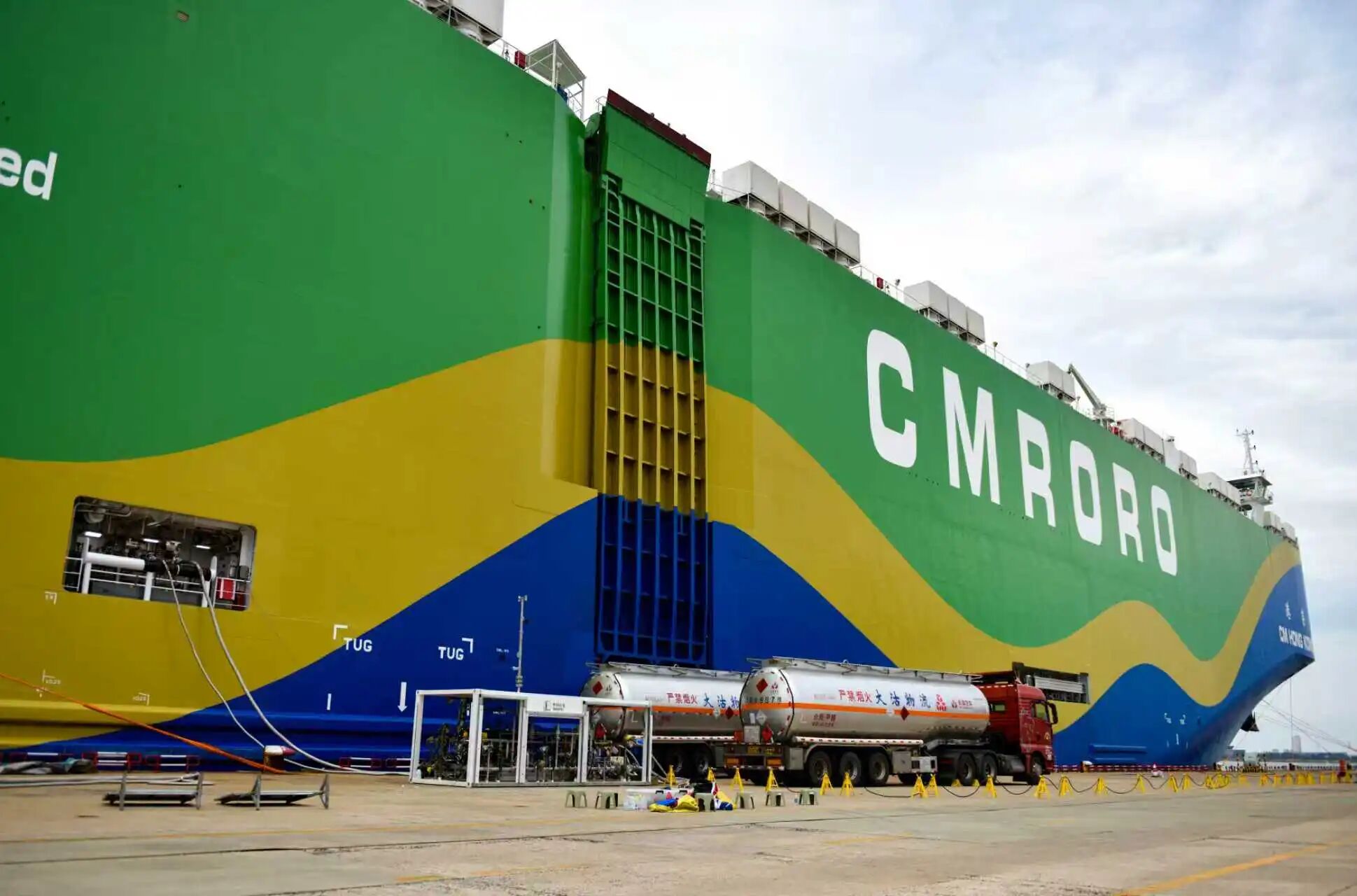 當天,在天津市政府相關部門及口岸單位的大力支持下,港榮輪在天津港成功進行全國首次滾裝船綠色甲醇加注作業,累計加注綠色甲醇約300噸,可減少二氧化碳排放460噸,標志著天津港已建立起了完備的甲醇加注體系。當前,全球港航業正積極探索清潔燃料的加速應用路徑,甲醇作為國際航行船舶低碳轉型的替代燃料,已成為行業新選擇。此次天津港實現全國首次滾裝船綠色甲醇加注,為全球航運低碳轉型提供了天津方案